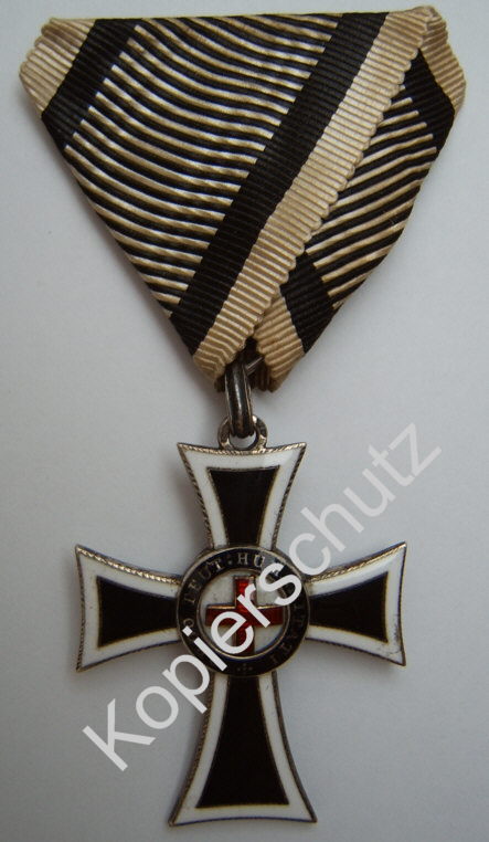 Adelige Österreichische Katholiken die das 19.Lebensjahr vollendet hatten (Frauen das 17.) durften dem Orden gegen einen Jahresförderbeitrag von mindestens 25 Gulden angehören und das Marianerkreuz tragen. Alternativ konnten sie sich im Falle eines Krieges zur persönlichen Krankenpflege verpflichten. In der damaligen K.u.k. Armee wurde der Orden spöttisch die adelige Hundemarke genannt. Im Jahr 1886 kam es zu einem Wechsel bei der Bandfarbe von schwarz zum schraffierten Band. Hersteller: